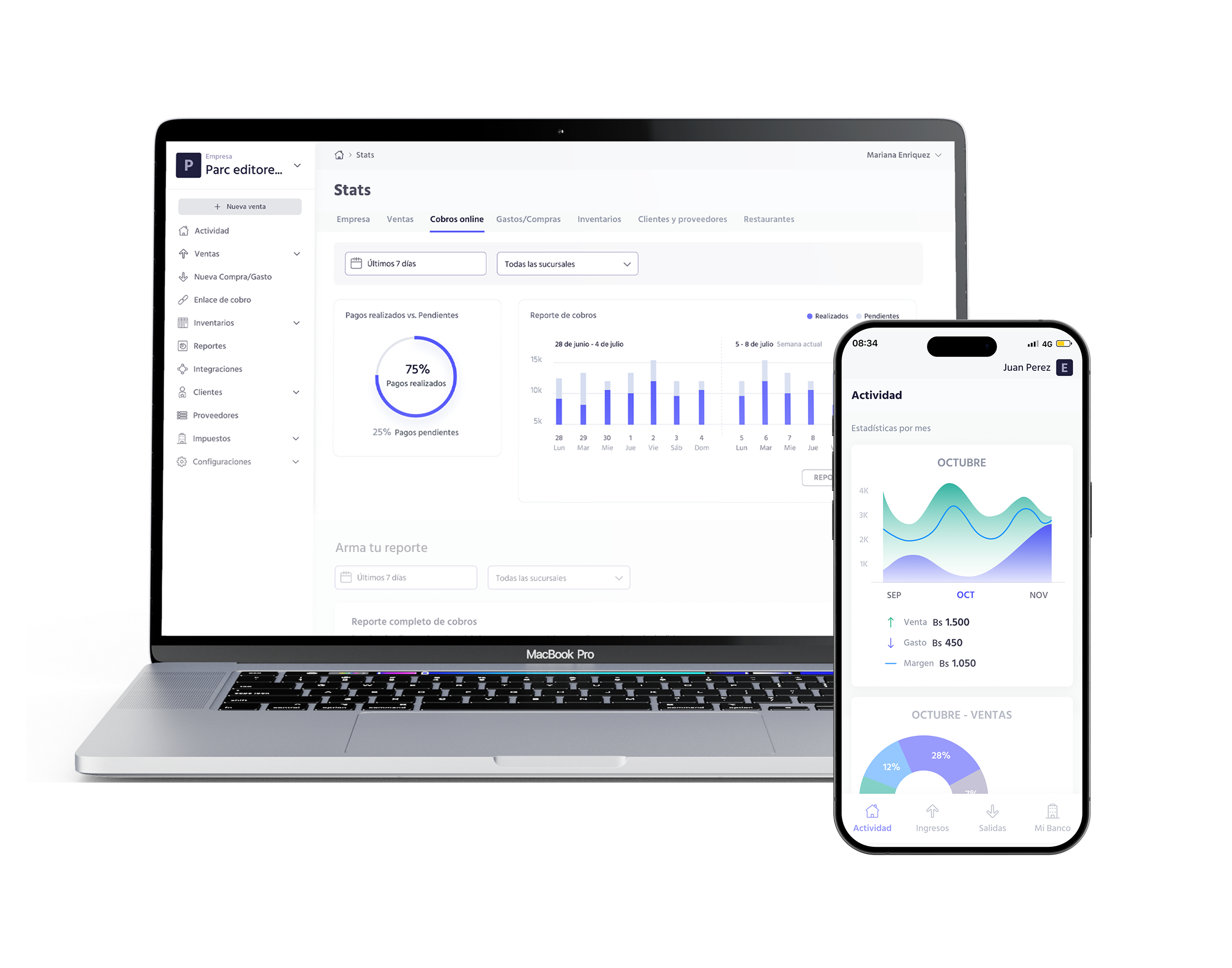 Tus ventas, cobros y movimientos se actualizan en tiempo real. Sin importar dónde estés o desde qué equipo ingreses.